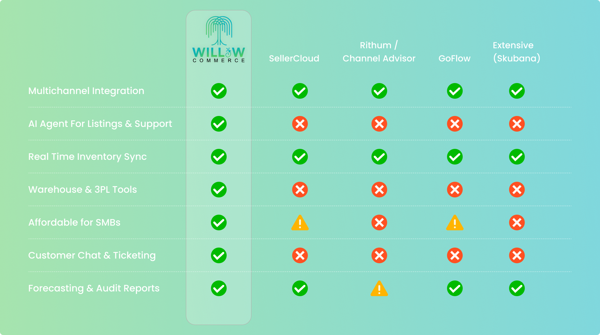 WillowCommerce.ai Competitor Pain Grid